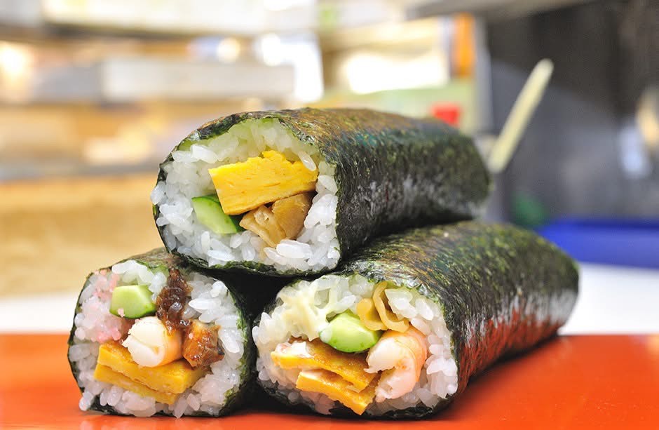●マヨネーズ巻…きゅうり・玉子・かんぴょう・ごぼう・えび・からしマヨネーズ(普通のマヨネーズに変更可)